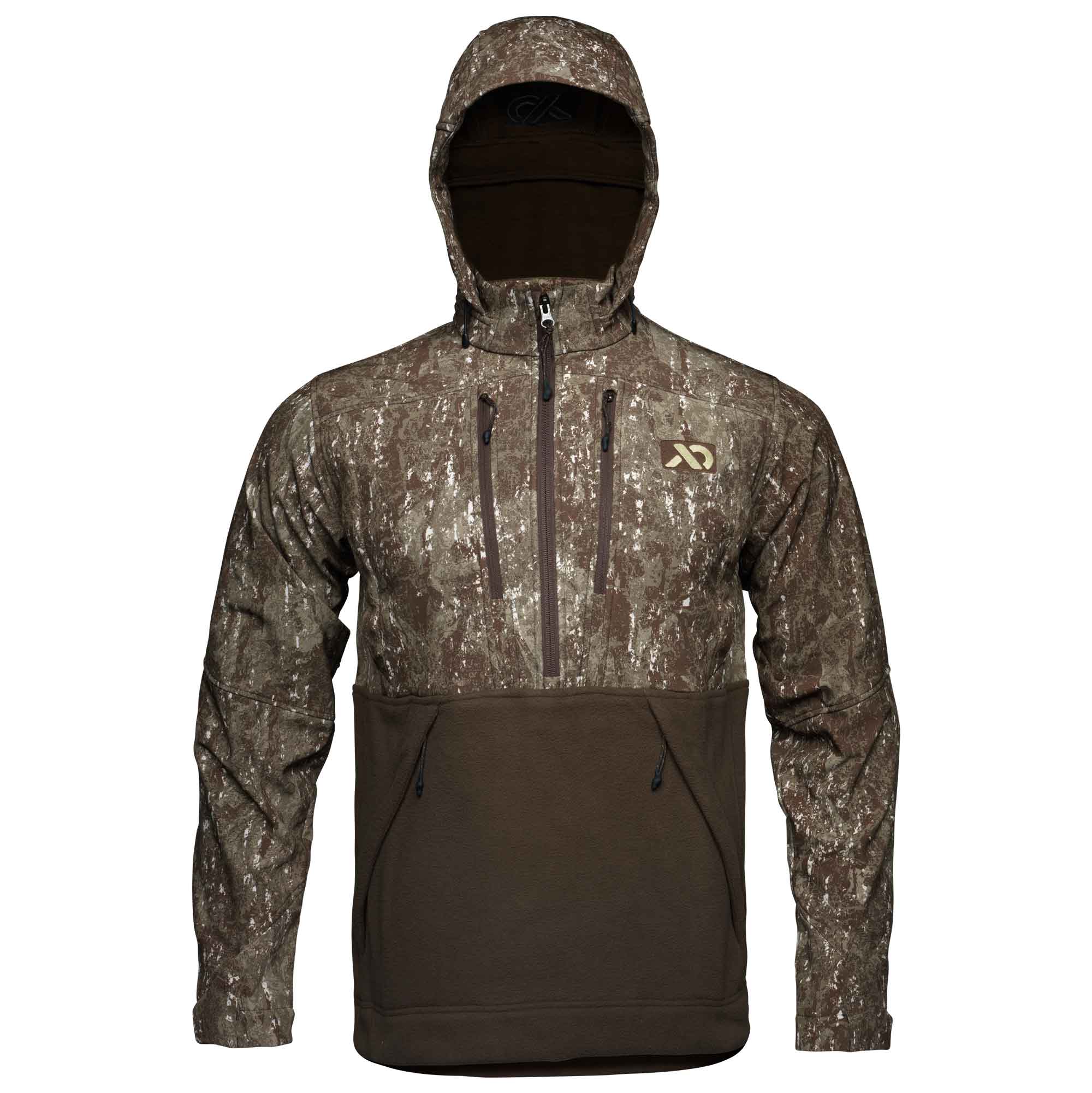 Built for waterfowlers, the Suppressor Hybrid Jacket protects you from the elements while seamlessly integrating into your bib or wader layering system. This jacket features a soft shell upper that's windproof, durable, stretchy, bucks heavy winds, and uses a PFAS-free water resistance to shed light rain and snow. The torso uses a breathable fleece that's warm, soft, and moisture-wicking, making it the perfect material to layer under your waders or bibs. Rounded out with two zippered chest pockets, a deep chest zipper for dumping heat, bib-compatible magnetic high-hand pockets, an articulated hood that cinches tight for rugged weather, and a zippered kangaroo pocket, the Suppressor Hybrid Jacket is the perfect balance of performance and comfort for every waterfowler.