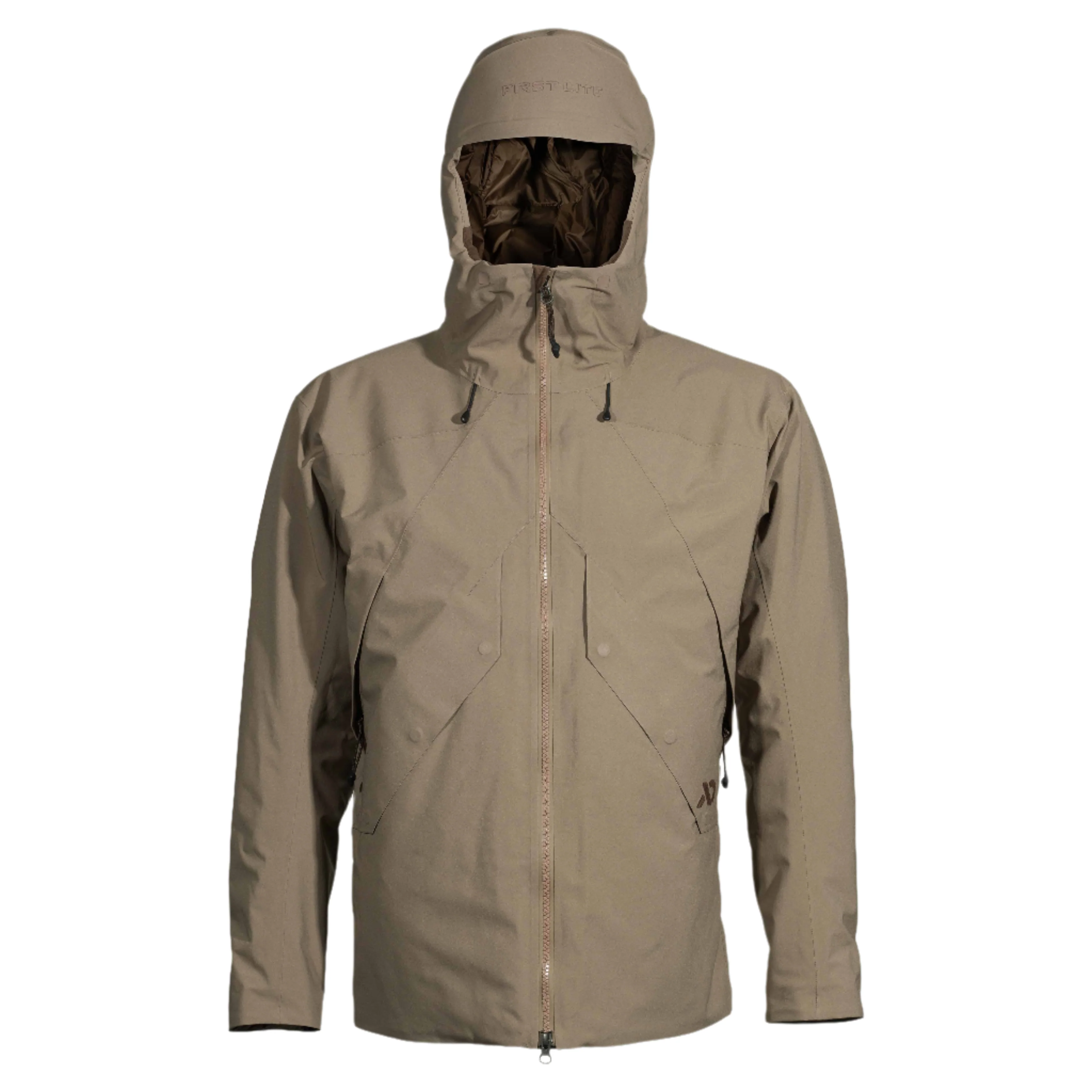 A jacket built to be highly versatile, with an ethos of “less kit, more performance,” the Uncompahgre Foundry Jacket delivers a completely weatherproof, highly durable, insulated system that fills multiple western kit needs in a singular garment. Cold glassing temps, unforgiving precipitation, and blistering winds are out of mind, allowing you to focus on harvesting a rifle season trophy as the weather becomes less and less cooperative. Additionally, making critical movements and final approaches in the Uncompahgre Foundry Jacket is no sweat (literally). The breathable laminate package and tricep vents work in tandem with the two-way front zipper that allows you to dump heat without having to dump your pack and bino harness. Finally, the highly durable DWR-treated face fabric allows you to focus on the hunt, not protecting your puffy. The Uncompahgre Foundry offers an unprecedented, highly packable, multiple-benefit system that is the most versatile western outerwear jacket First Lite has ever offered.