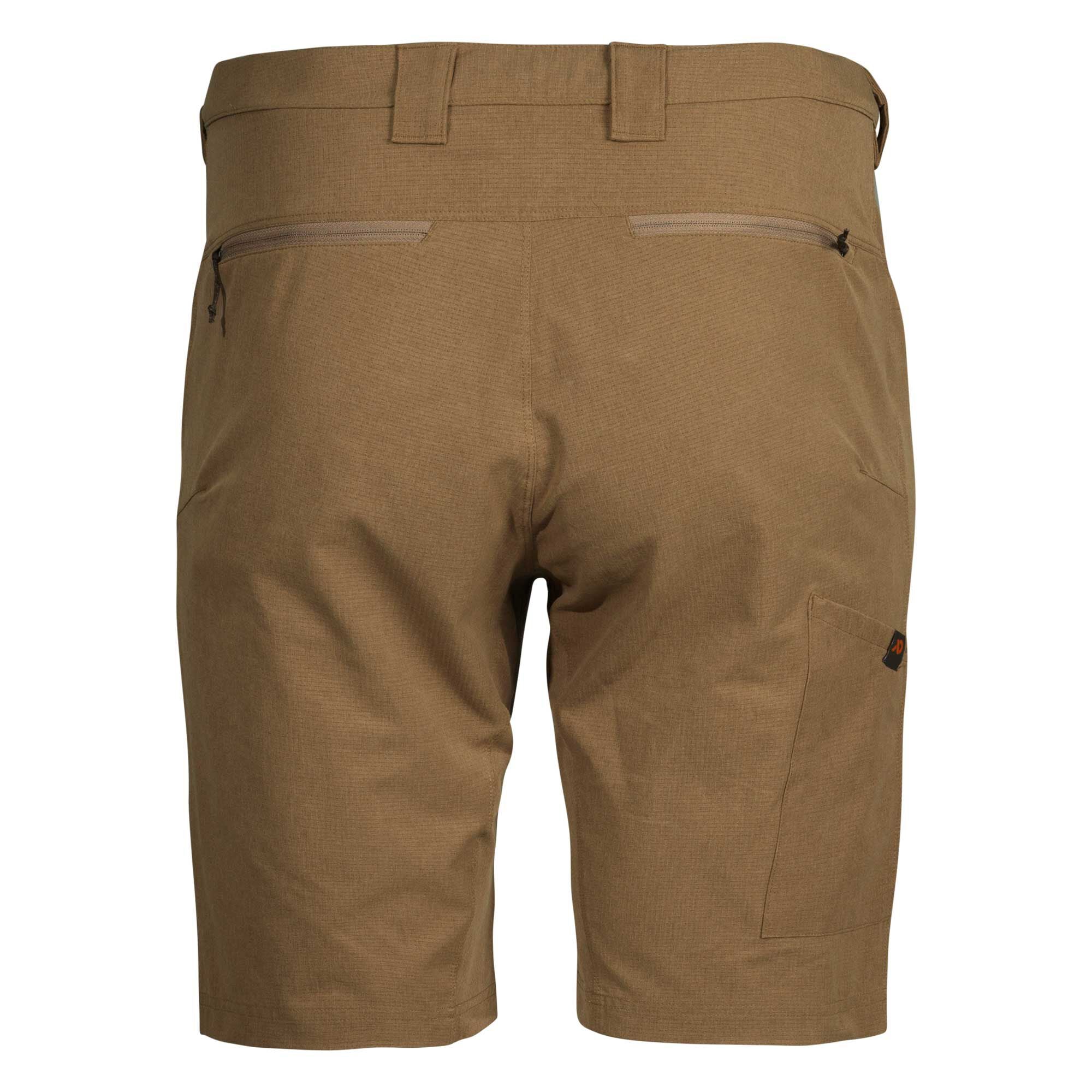 The Trace Short features a traditional 5-pocket construction with zippered rear wallet pockets for additional secure storage. Jean-style front pockets have a built-in knife sleeve for easy access to your pocket knife, and the integrated low-profile belt is pack-belt compatible.